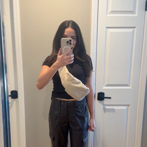 "C’est vraiment tellement bien ! J’ai été surprise par la qualité du matériau, il est vraiment agréable et tout doux. Je le porte toute la journée avec la petite bouillotte à l’avant ou dans le dos, selon ce dont mon corps a besoin !"